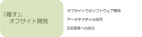 現代のシステム開発は、開発拠点がグローバルに展開されています。ソフトウェア開発においてはワールドワイドに分散しています。「離す」とは、オフサイトで効率よくソフトウェア開発を行うための技術です。